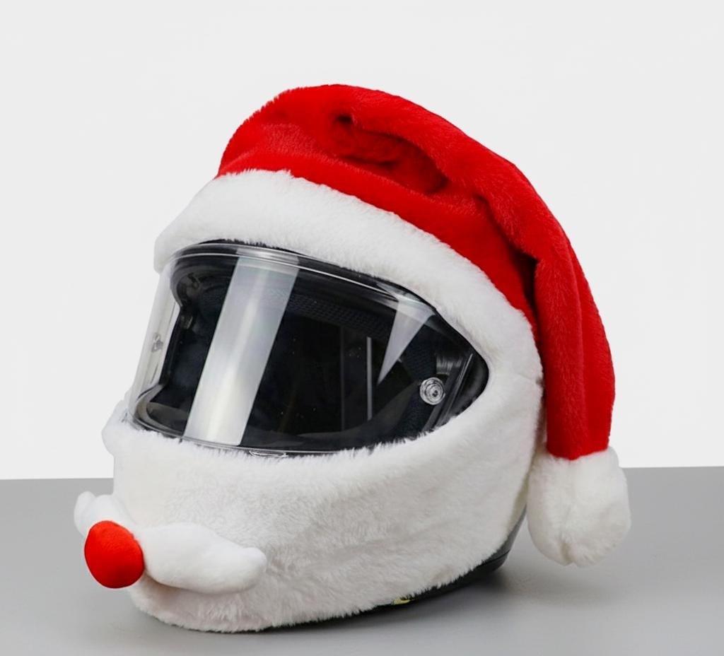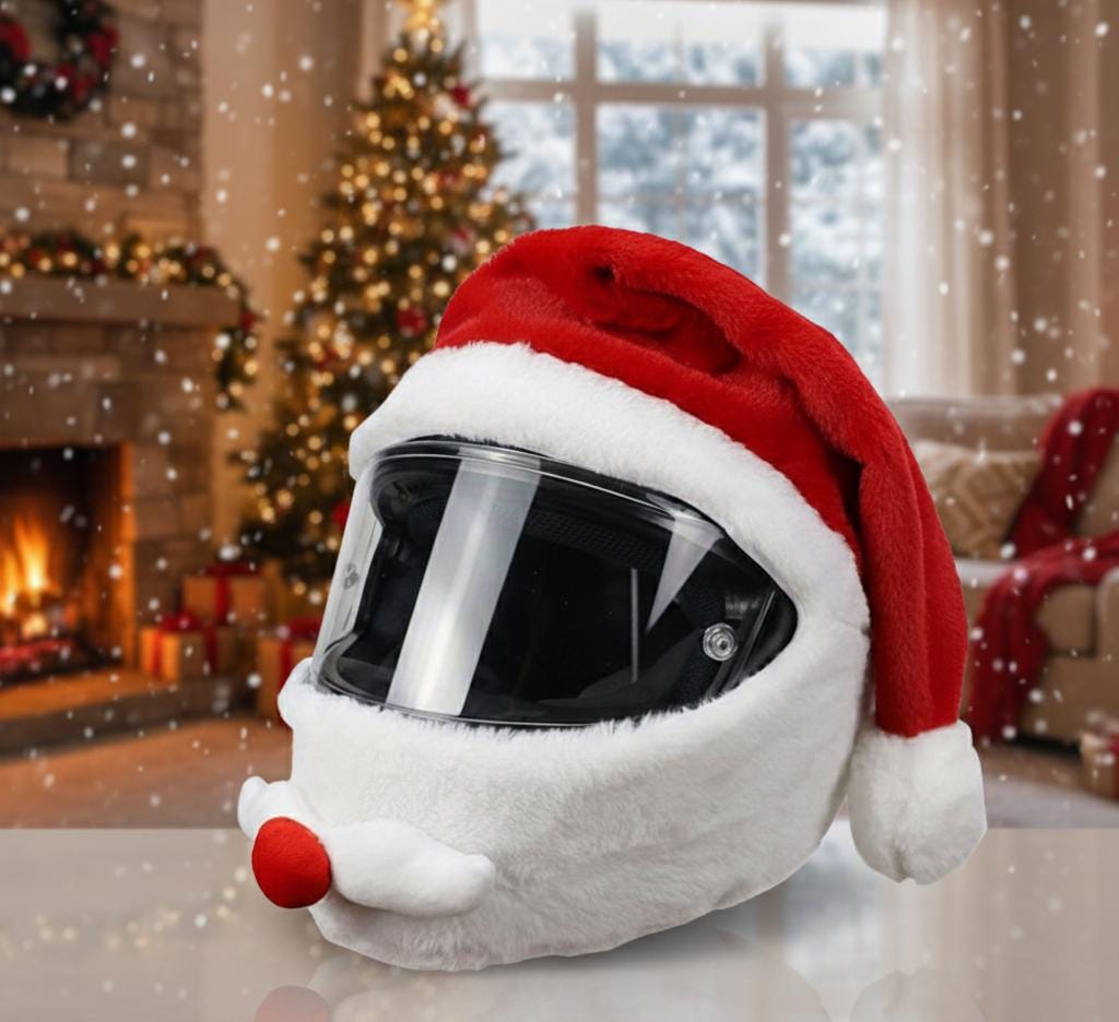 Santa Motorcycle Helmet Cover | Plush Christmas Biker Gift